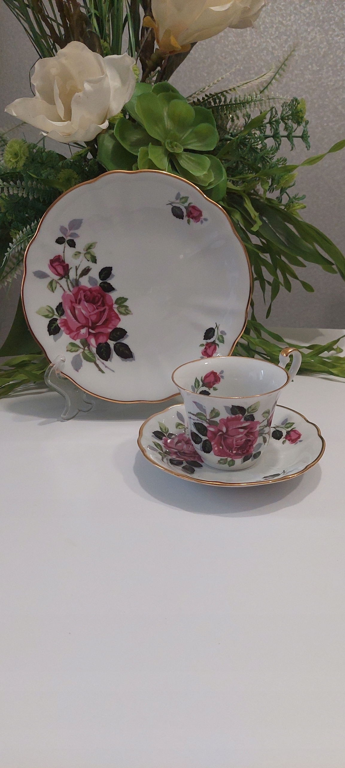 Трио в очень хорошем состоянии, размеры: высота чашки 7см, диаметр чаши 8см, диаметр тарелки 13см, диаметр десертной тарелки 20см.