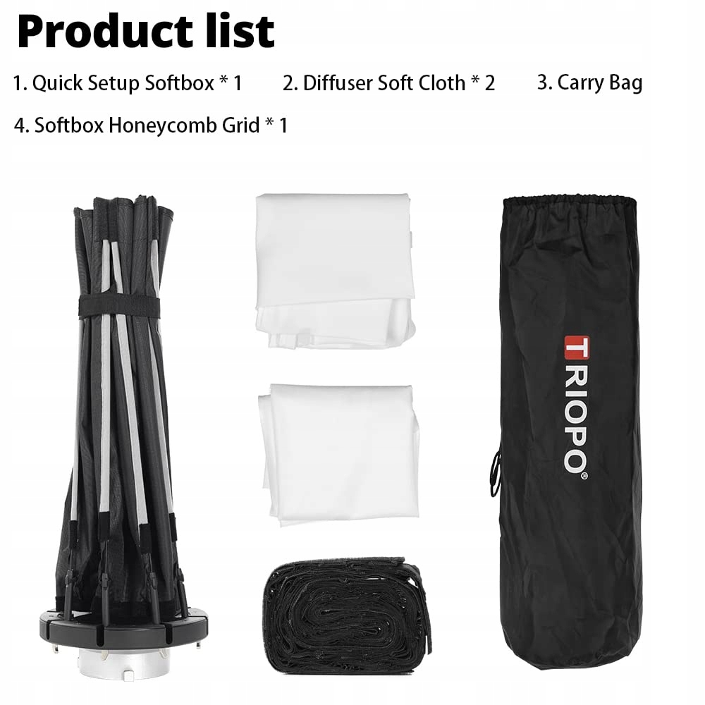 - Название товара: Triopo 65 см Портативный фотобантик в сборе Восьмиугольный софтбокс для зонтика Софтбокс для быстрой установки + сотовая сетка для студийной фотосъемки на открытом воздухе 65 см