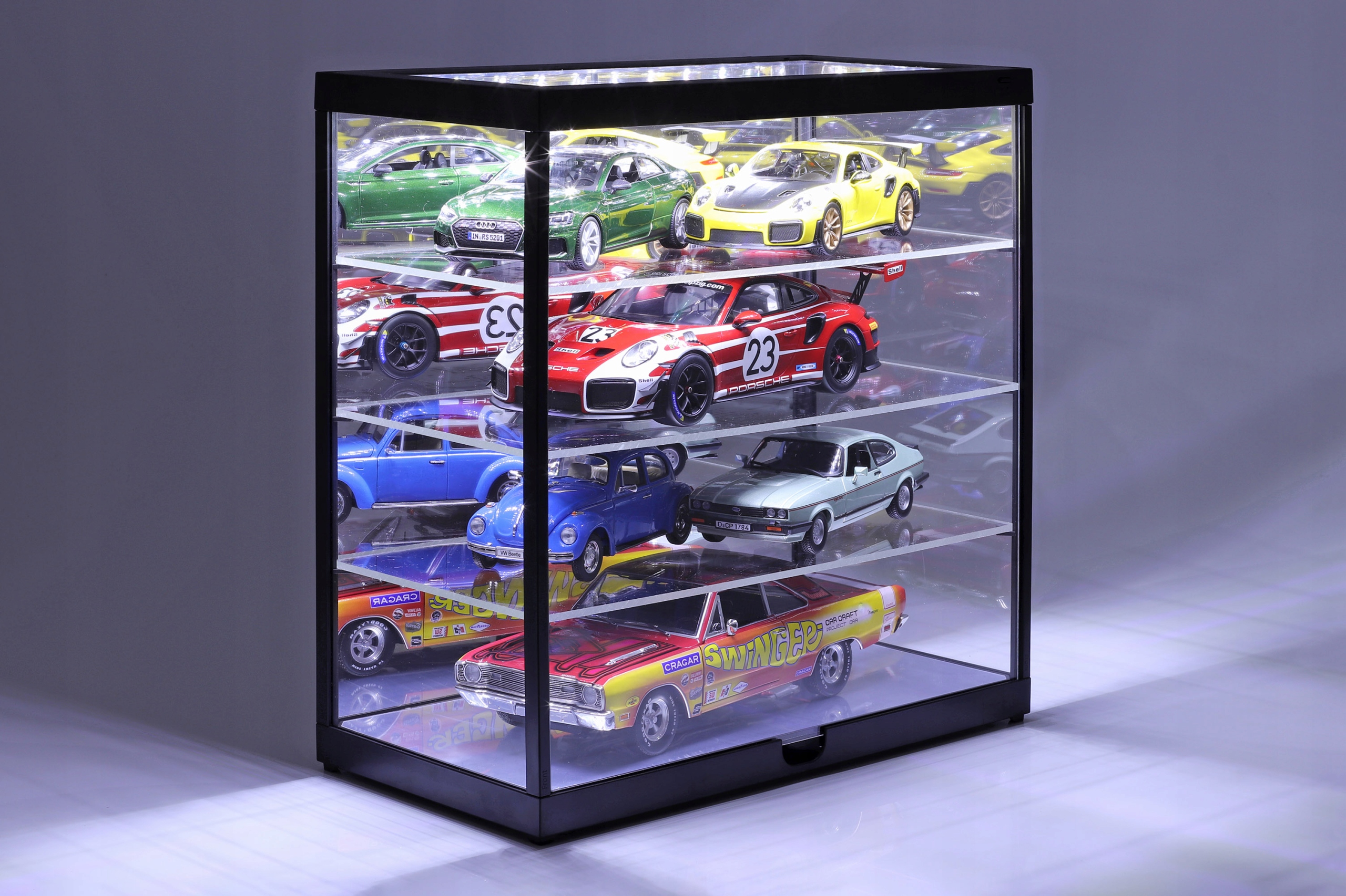 TRIPLE9 4-рівневий Вітрина для моделей в масштабі 1:24 з підсвічуванням. Світлодіод і чорне дзеркало
