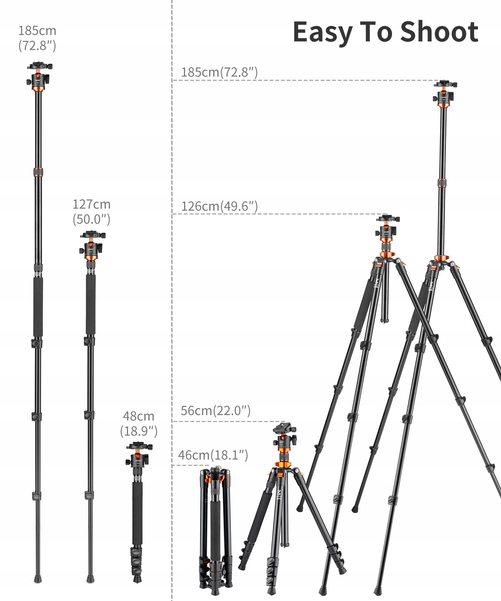 Представленный штатив K&F спроектирован и оптимизирован для длительных фотографических путешествий, цель: максимальная стабильность и функциональность при минимально возможном весе, все ненужное во время путешествия убрано исключены, использованы современные технологии, легкие и прочные материалы.