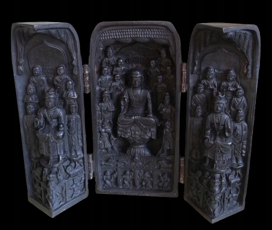 Предмет аукциона/продажи - старинный передвижной алтарь - буддийский триптих, изготовленный из литейной смолы в Китае - Непале.