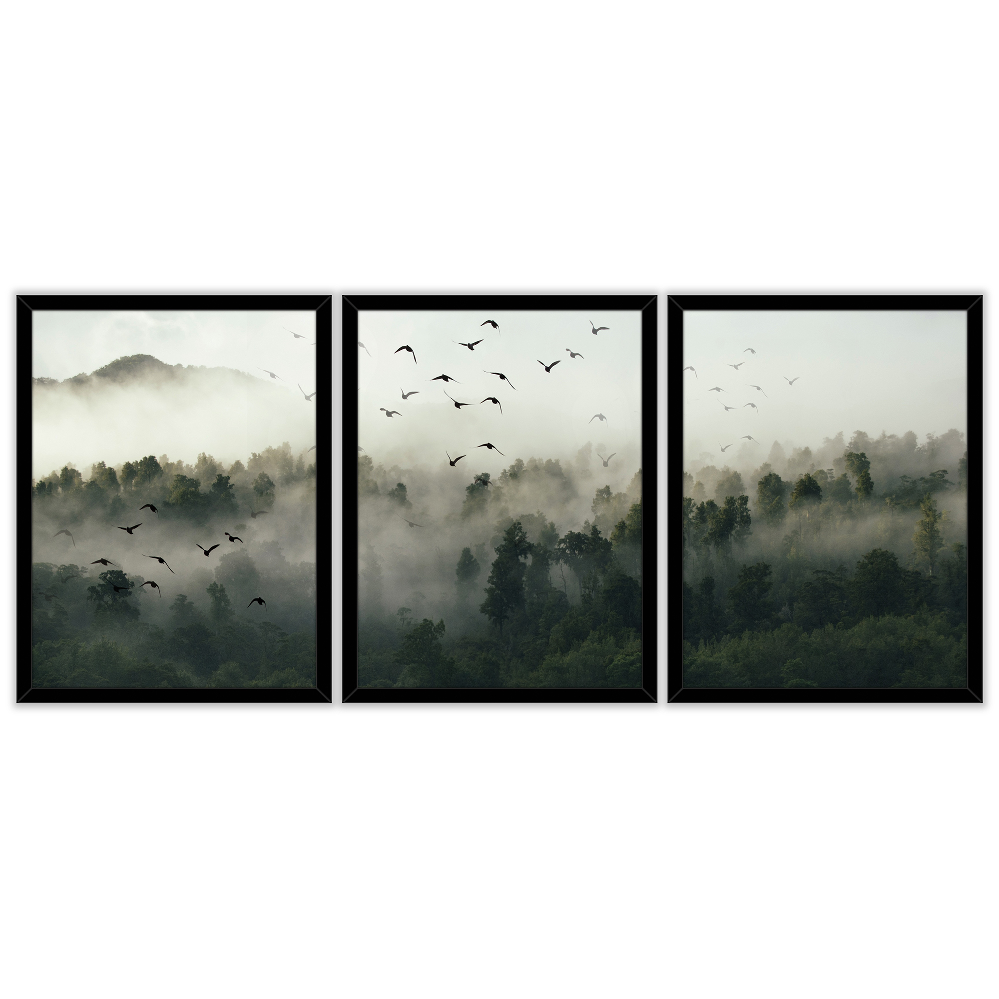 КАРТИНЫ ТРИПТИК ЛЕС В ТУМАНЕ 3 КАРТИНЫ В РАМКЕ СПАЛЬНЯ БОЛЬШАЯ ГОСТИНАЯ