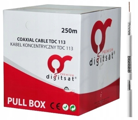 Белый Концентрический кабель Digitsat Premium TDC113 Trishield Cu b>. Серия TDC имеет основную вену - Copper Core 1.13mm и тройной экран type trishield .