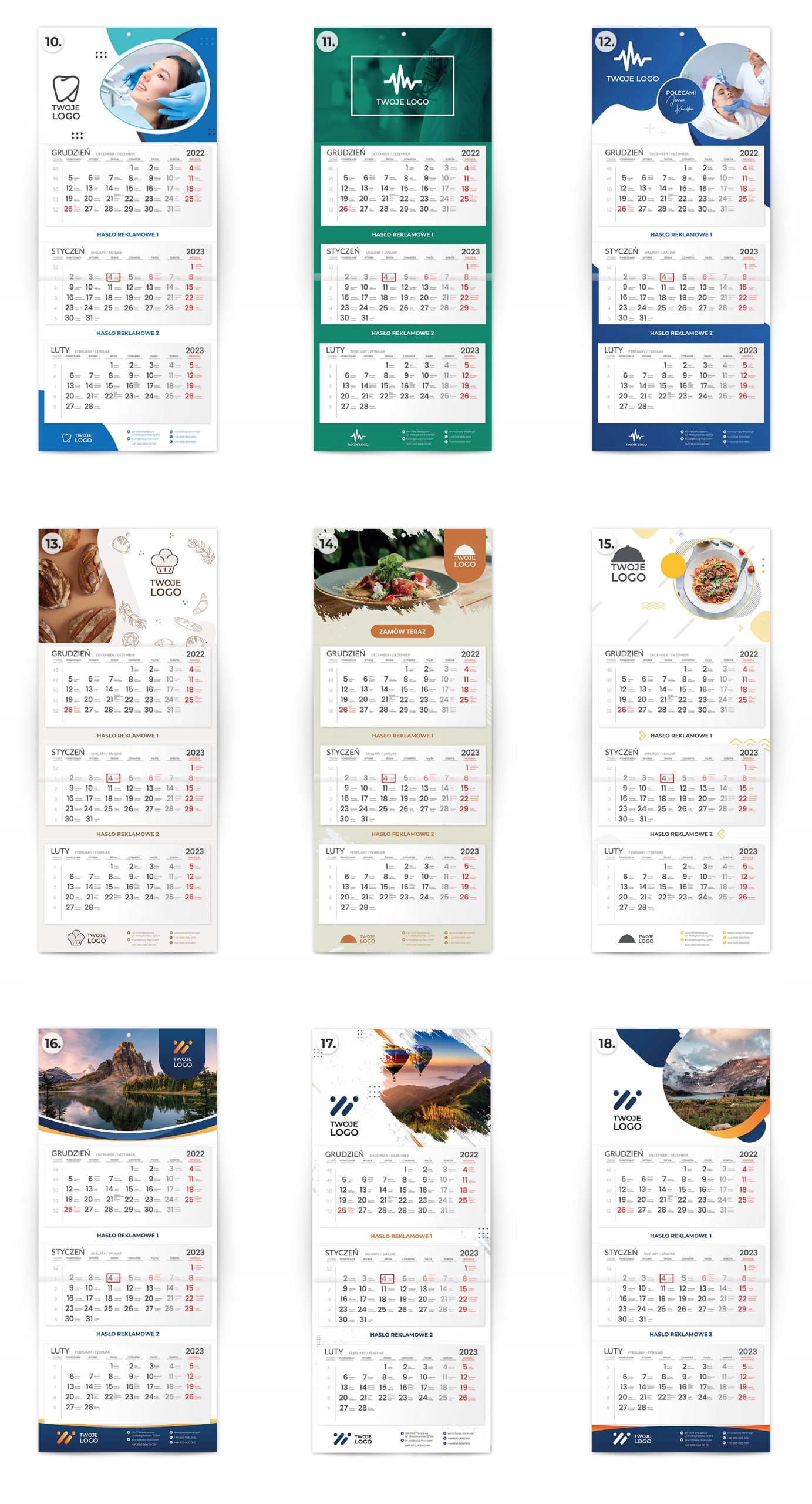Рекламный календарь может содержать не только логотип компании, но и фотографии, описания бизнеса, рекламные слоганы или интересные факты. Календари также можно адаптировать к отрасли, в которой работает компания, например, строительству, экологии или роскоши.