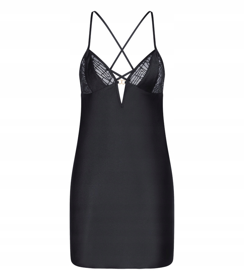 Эта сексуальная ночная рубашка имеет узкие регулируемые бретельки. V-образный вырез с красивым декором чувственно оголяет ключицы. Рубашка слегка сужается в талии, подчеркивая фигуру.