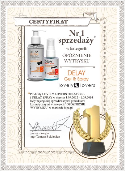 Прекрасные любовники задерживают спрей 50 мл и гелевые 150 мл продукции являются наиболее подготовленными в их категории. Это было бы невозможно, если бы не сотни довольных клиентов. Вот почему серия LL Delay была отмечена сертификатом «продажи № 1» в категории: задержка эякуляции. Это было связано с этим, благодаря самым высоким продажам и благоприятным мнениям покупателей. Спасибо!