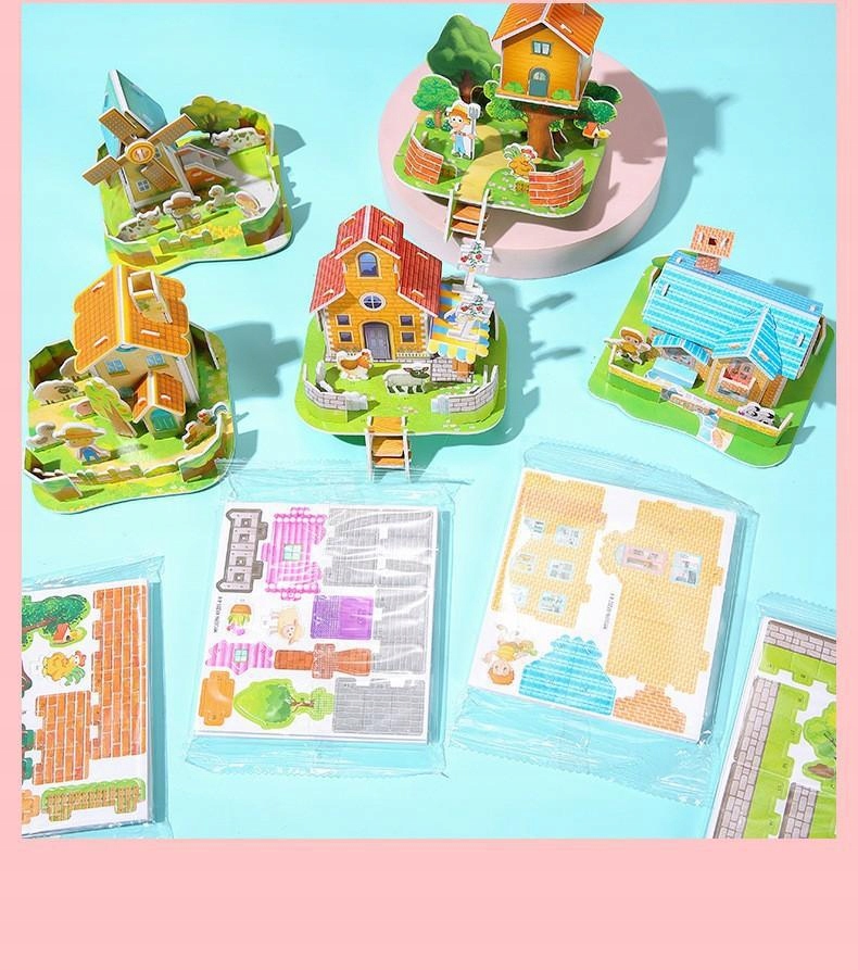 • Образовательная функция: при складывании небольшого дома в 3D дети должны наблюдать за рисунками и понимать пространственную структуру для практики пространственных когнитивных способностей. В то же время практический процесс сборки может также улучшить координацию рук и моторных навыков детей.