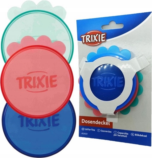 - Набор из 3 крышек, которые прекрасно защищают открытые банки с кормом для собак и кошек.
