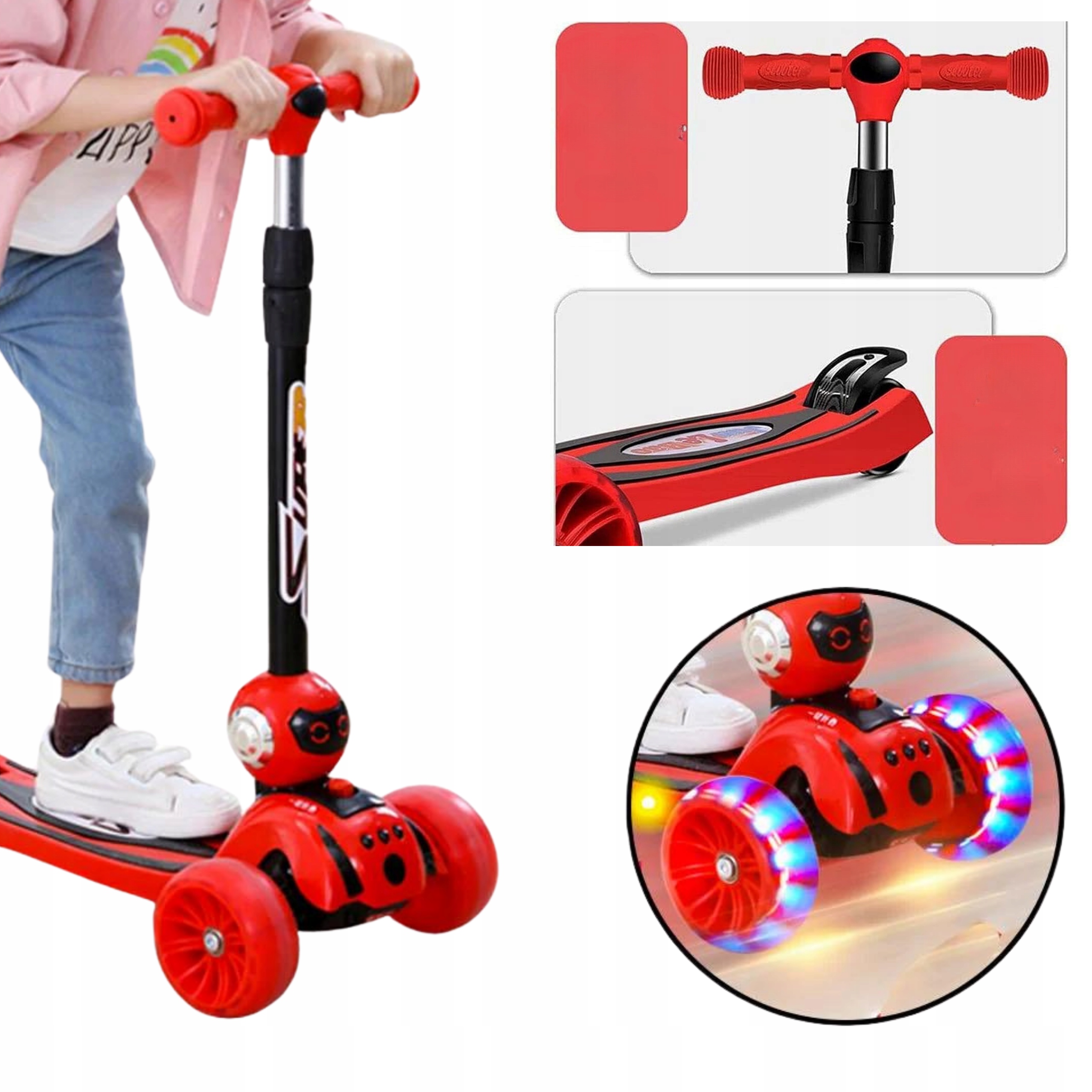 Trójkołowa Składana Balansowa Dziecięca ŚWIECĄCA Hulajnoga Czerwony Robocik