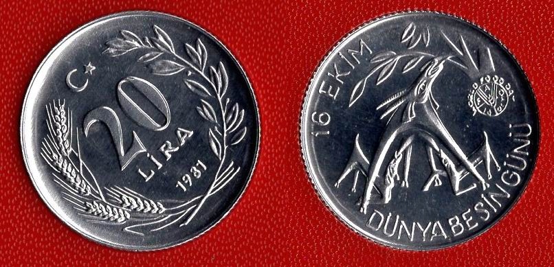 Türkiye 1981 20 Лира Фао редко