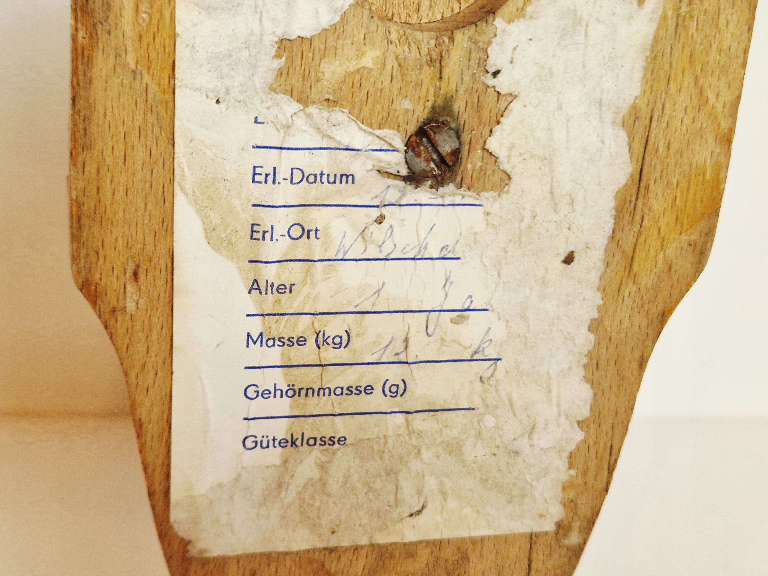 ТРОФЕЙ - АНТЕРЛ КОЗА-ОЛЕНЯ МЫКУС С ФРАГМЕНТОМ ЧЕРЕПА /726