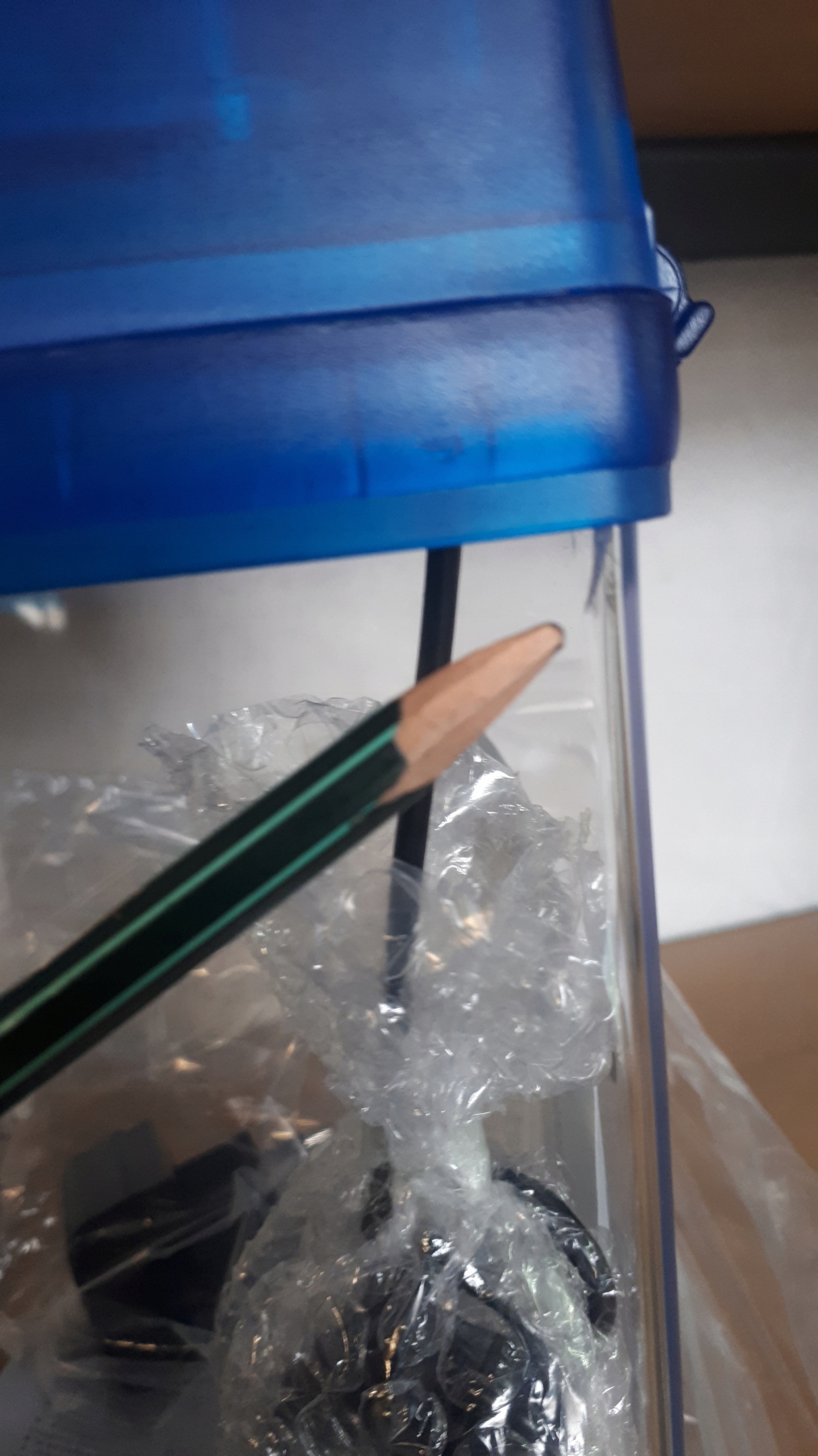 повреждение включает в себя трещину около 1 см до верхнего края акрилового аквариума. Фабричный дефект. (Видимо на фото ниже)