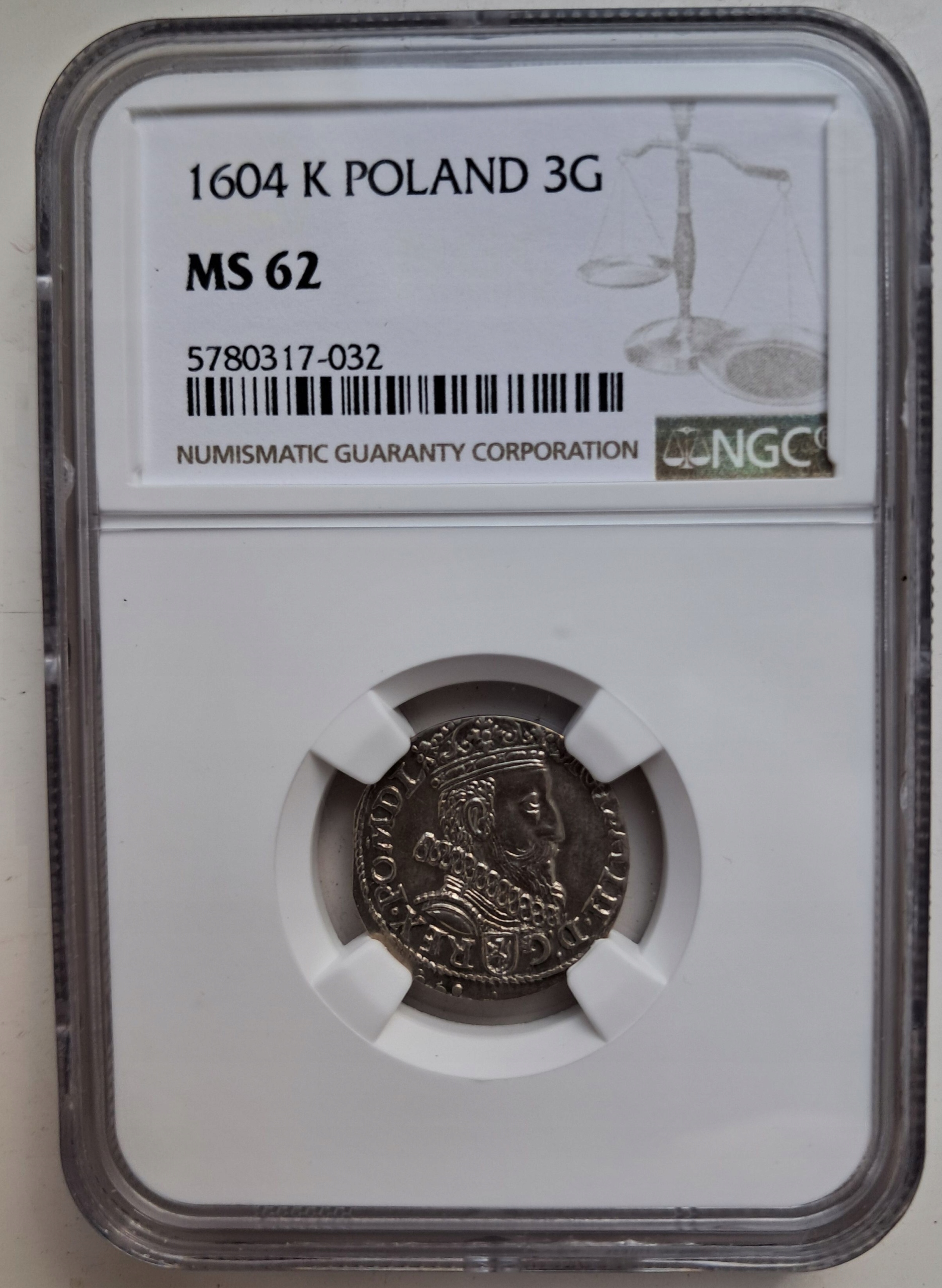 Трояк 1604 Краков Зигмунт III Waza NGC MS62 (3MAX) РЕКОМЕНДУЮ