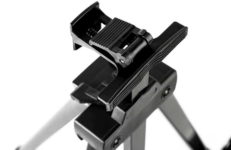 Откройте два зажима на каждой ножке и раздвиньте их на нужную высоту. Затем защелкните зажимы, чтобы зафиксировать ножки в правильном положении.
