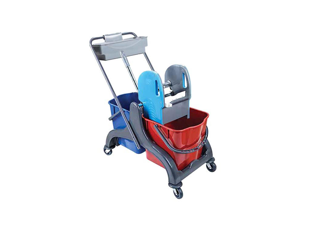 Тележка SATURN имеет два ведра емкостью 25 литров, которые изготовлены из высококачественного материала ABS, отличающегося высокой устойчивостью к трещинам. В нем используется пресс с прижимными челюстями, что упрощает процесс отжима. Этот пресс работает с плоскими, веревочными швабрами и швабрами Kentucky. Тележка управляется удобно и безопасно с помощью хромированной ручки, к которой крепится корзина для наборов промышленной химии. Он оснащен прочными и устойчивыми колесами, которые не царапают землю во время движения. Все это обеспечивает соответствующий комфорт работы.