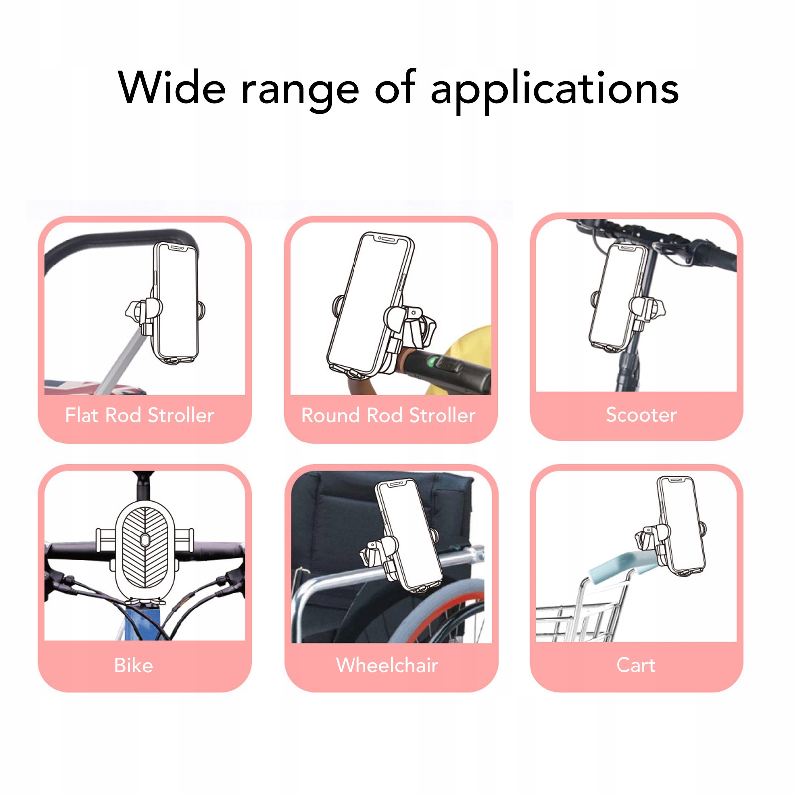 3. Сопоставление ширины: подходит для большинства колясок, ходунков, инвалидных колясок, скутеров, ручек филиала, корзин, каяков, квадроциклов, газонных косилок и т. Д.