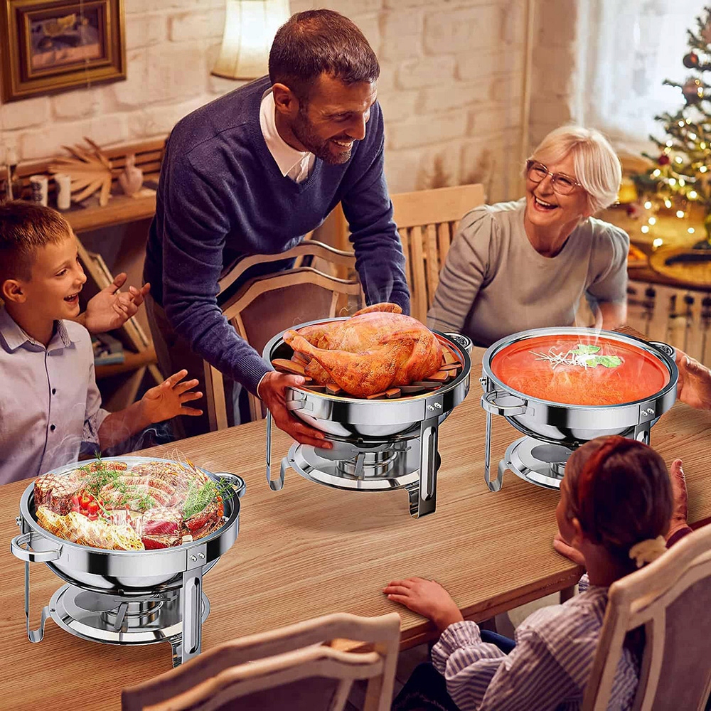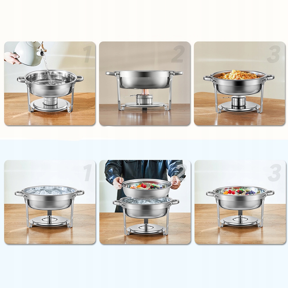 Большая вместимость: Подогреватели еды вмещают до 5 литров еды в элегантном стиле шведского стола и сохраняют пищу теплой и свежей в течение длительного времени, что идеально подходит для вечеринок, банкетов, свадеб и других мероприятий!