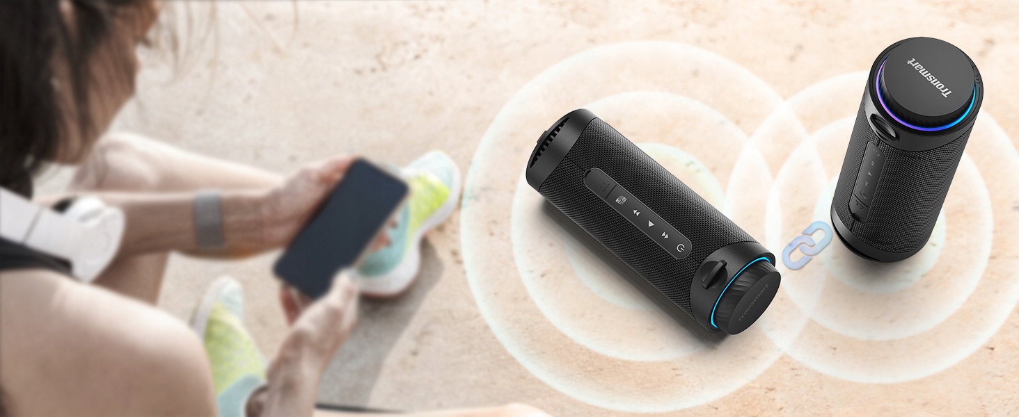 - Слушайте удивительно громкий и сбалансированный звук практически без искажений благодаря 3 динамикам и запатентованной технологии SoundPulse от Tronsmart. б>. Короткое нажатие кнопки SP воспроизводит более резкие басы и оживляет вечеринку. Позволяет соединить 2 динамика Bluetooth Light Show вместе через Bluetooth для создания левого и правого каналов для получения настоящего стереозвука мощностью 60 Вт.