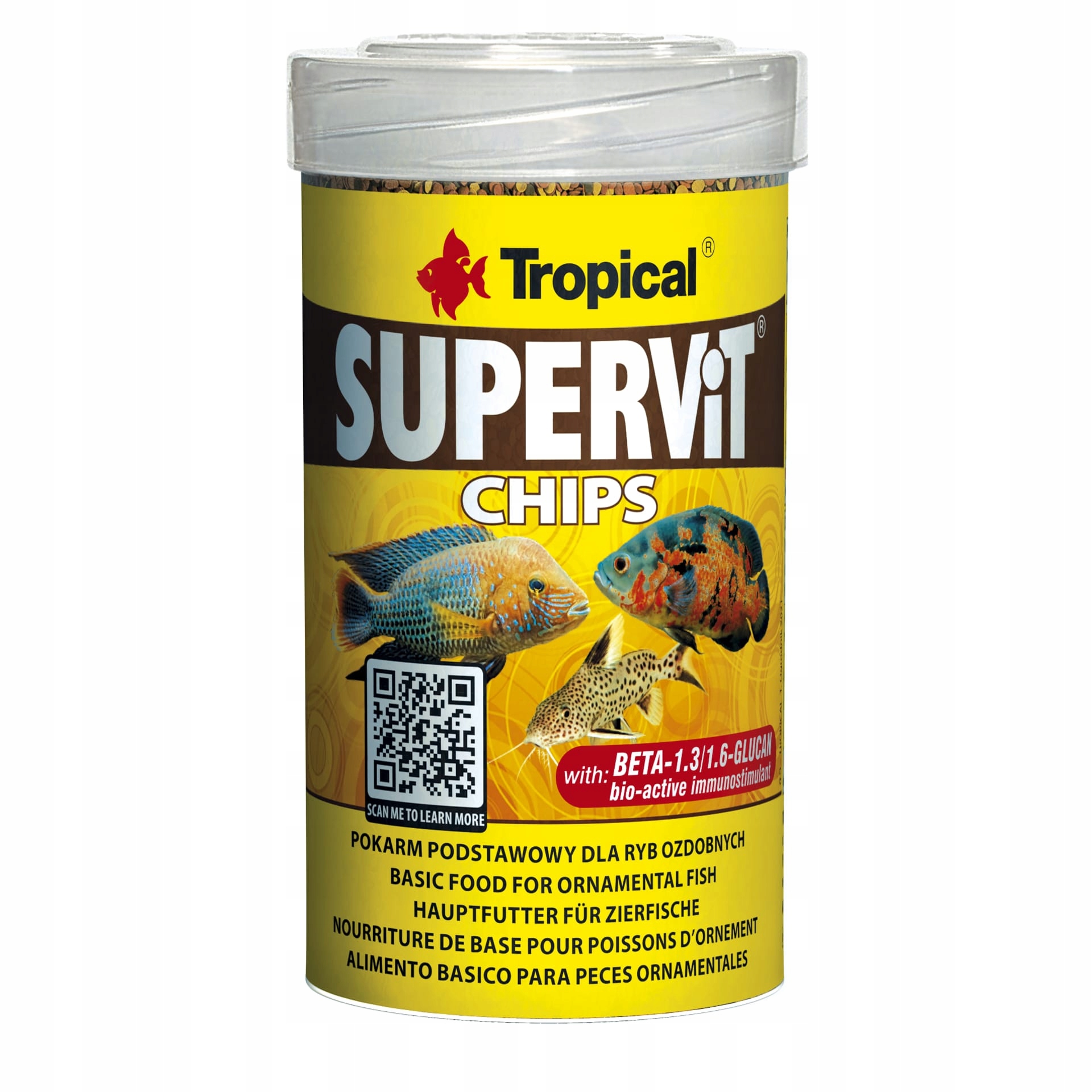 Чипсы «Супервит» — универсальный корм, предназначенный для ежедневного кормления большинства видов всеядных рыб.