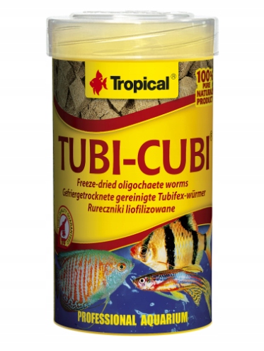 TUBI CUBI Натуральный корм в форме кубиков для всеядных и плотоядных рыб, полученный путем сублимационной сушки трубчатых червей (Tubifex Tubefex).