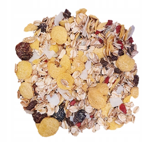 Тропические мюсли — это уникальная смесь овсяных хлопьев высочайшего качества, сухофруктов и орехи, которые перенесут вас прямо на райский пляж. Вы найдете экзотические ароматы кокоса, ягод годжи, клюквы и изюма. Это также источник клетчатки, витаминов и минералов, которые дадут вам энергию в течение дня. Откройте для себя вкус тропиков на своей тарелке с нашими тропическими мюсли и погрузитесь в экзотический праздник вкуса и здоровья!