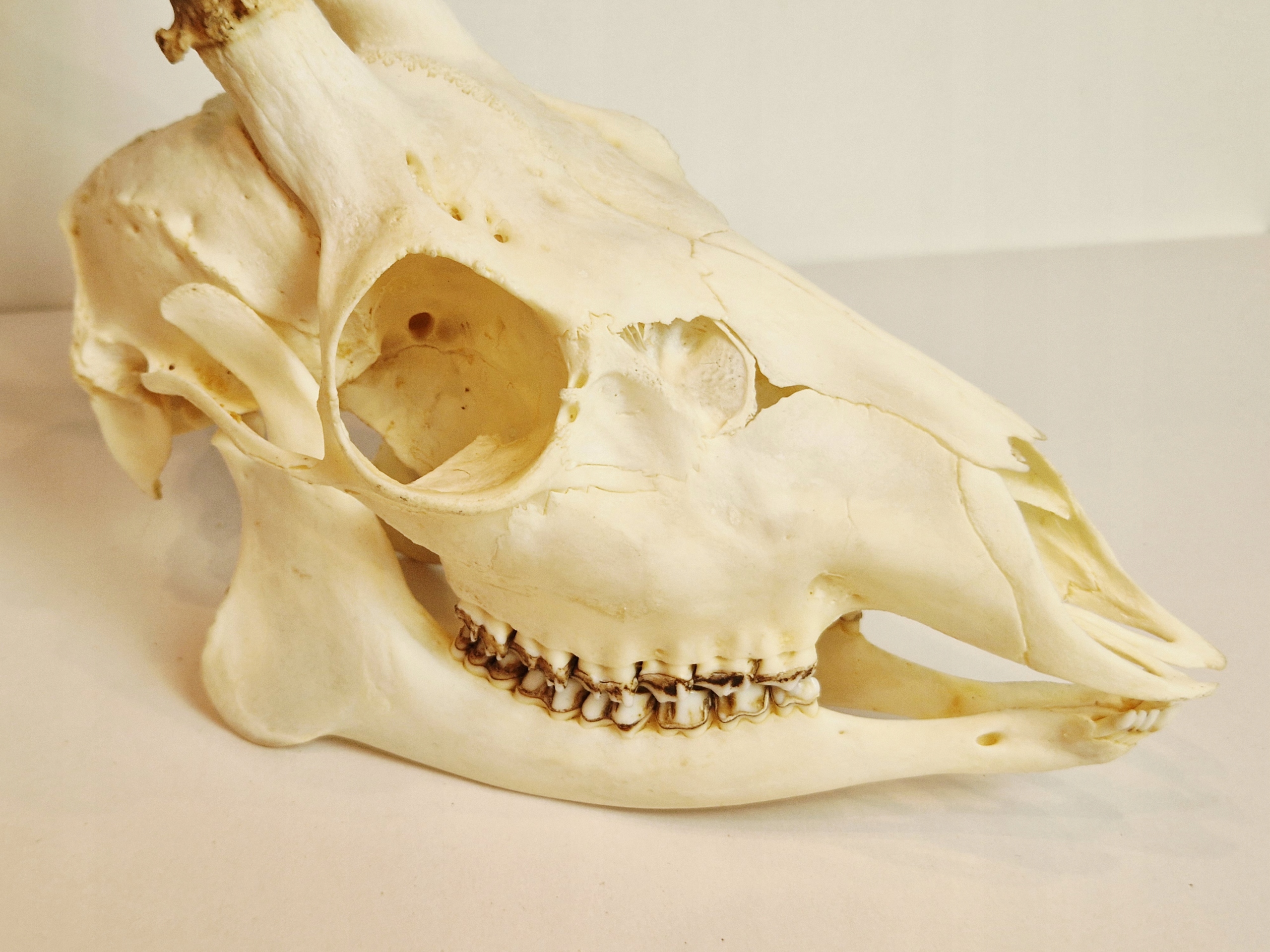 Череп и челюсть без значительного повреждения - полные верхние и нижние зубы.