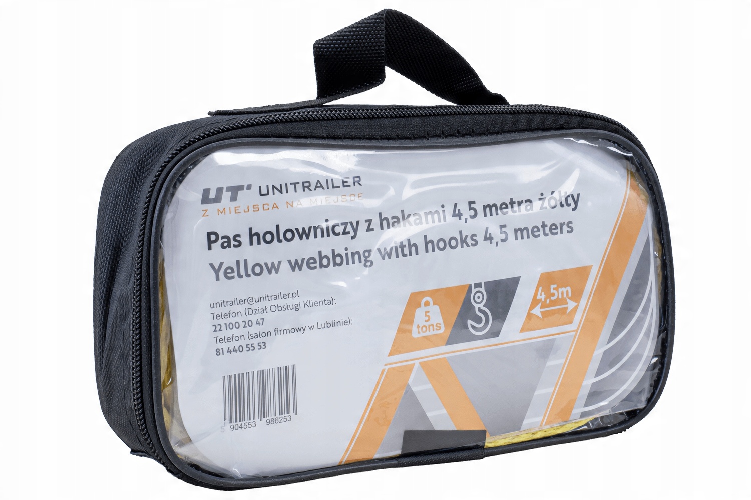 Буксировочный кабель с крючками unitrailer буксирующий ремень 4,5 м/50 мм/5т желтый Буксирующий ремень с крючками с унитером в желтом цвете является надежным аксессуаром для экстренной буксировки пассажирских транспортных средств, фургонов и световых машин. Изготовленная из постоянной синтетической ленты с длиной 4,5 метра и шириной 50 мм, обеспечивая достаточную прочность, ремень оснащен сплошными металлическими крючками, защищающими с обеих сторон. Максимальная сила тяги составляет 5 тонн (5000 кг), что обеспечивает безопасную и эффективную буксировку большинства стандартных транспортных средств. Буксирующие кабели являются важным элементом каждого автомобиля - они полезны в чрезвычайных ситуациях, когда необходимо перемещать иммобилизованное транспортное средство. Благодаря правильной длине и прочной конструкции, кабель Unitrailer позволяет вам поддерживать безопасное расстояние между транспортными средствами и предотвращает внезапные придурки. Использование прочных материалов означает, что ремень сохраняет свои свойства даже при интенсивном использовании и сложных погодных условиях. Unitrailer заботится о качестве и безопасности своих продуктов, поэтому буксирный ремень оснащен прочными стальными крючками, защищенными от коррозии. Чистая маркировка ленты и информационная метка на польском и английском языке облегчают идентификацию технических параметров. Эта модель является практическим и необходимым оборудованием для каждого водителя, повышая безопасность и готовность к неожиданным дорожным ситуациям.