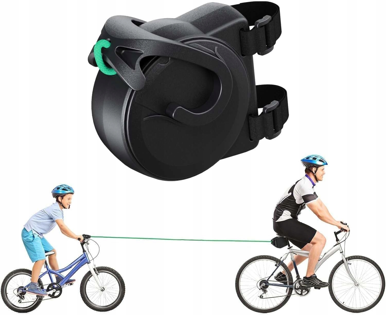 Этот самовтягивающийся буксирный трос длиной 2,5 м позволяет с комфортом перевозить ребенка на велосипеде.