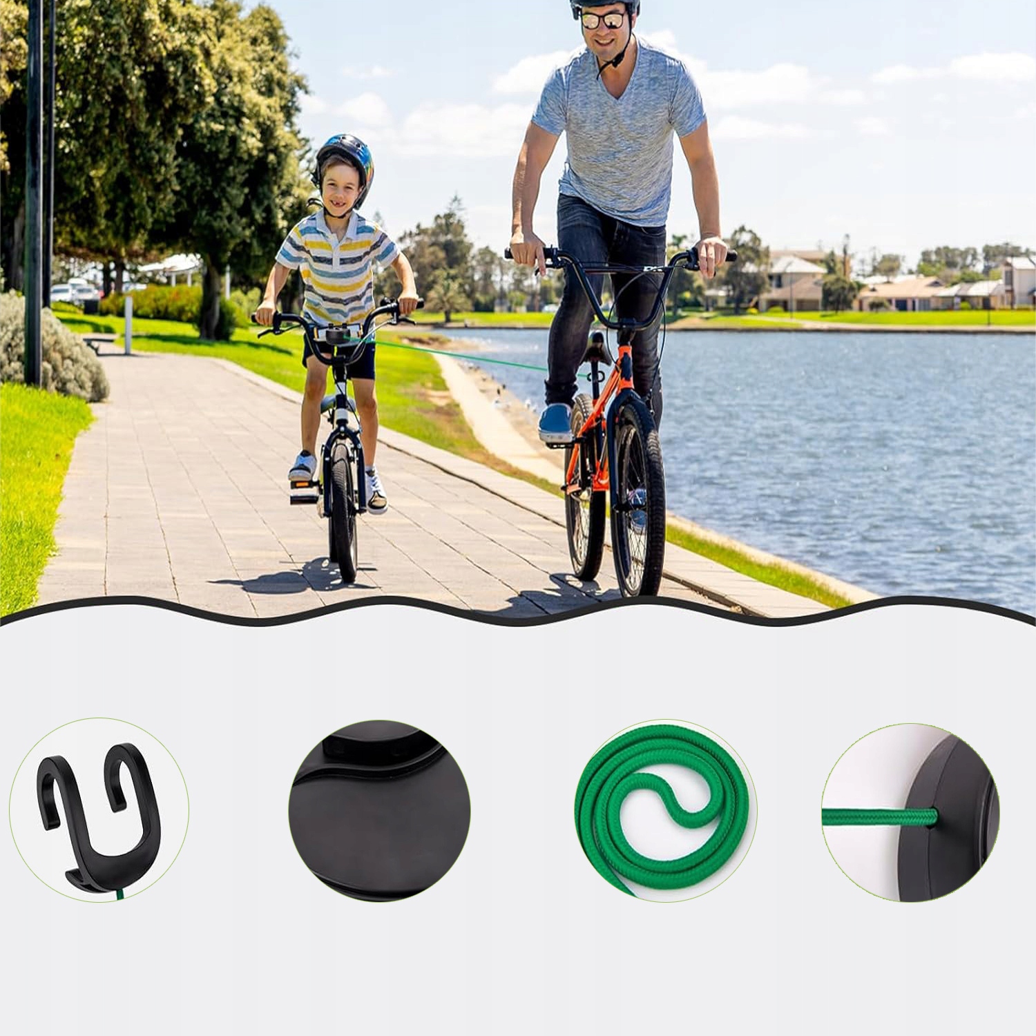 - Этот детский велосипедный поводок позволяет поддерживать максимальную дистанцию 2,5 метра между два велосипеда, обеспечивающие удобную и устойчивую буксировку.