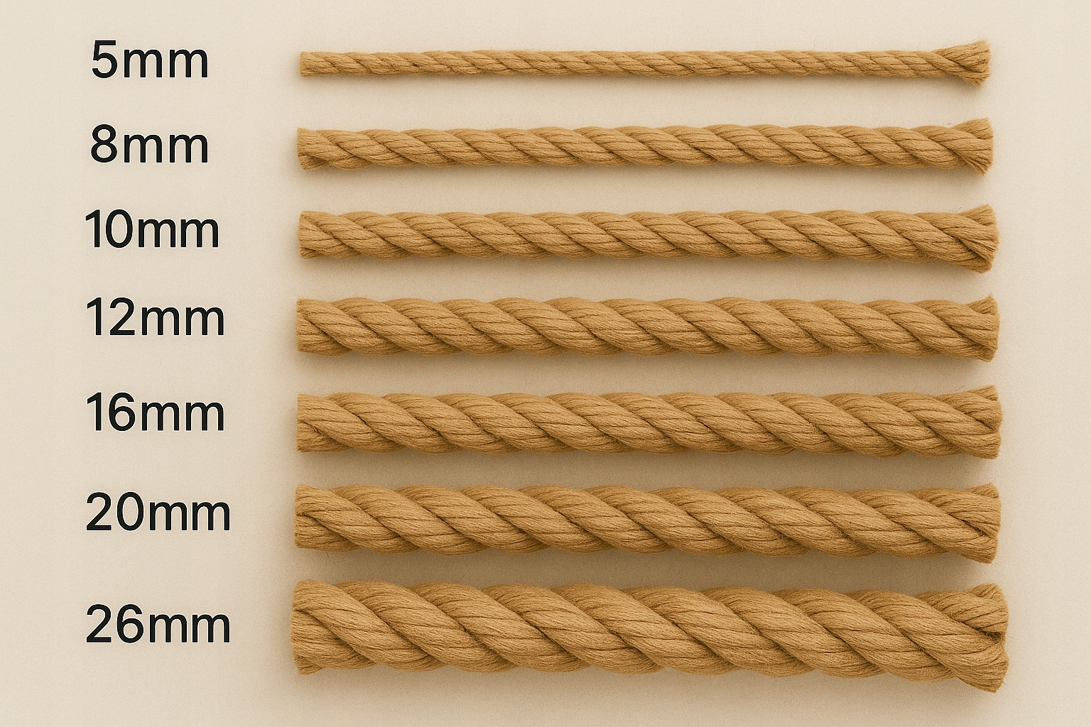 - 5–8 мм – легкие крепления, отдых, поделки, элементы кошачьих когтеточек.