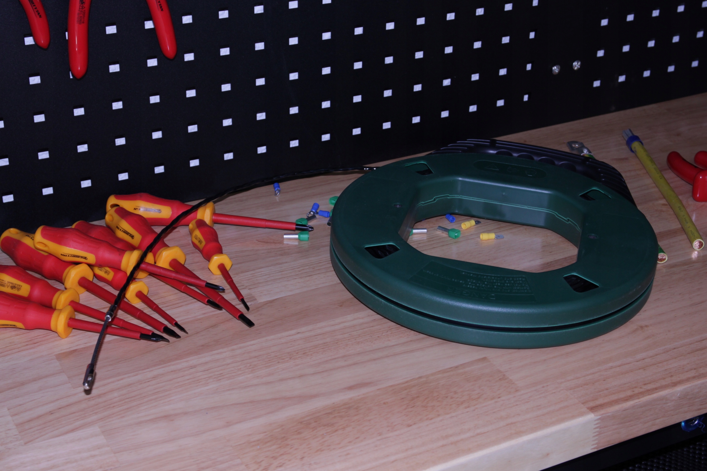 - Высоко гибкий кабель заканчивался металлическим наконечником с помощью Eyeput , облегчает перетаскивание проводов.