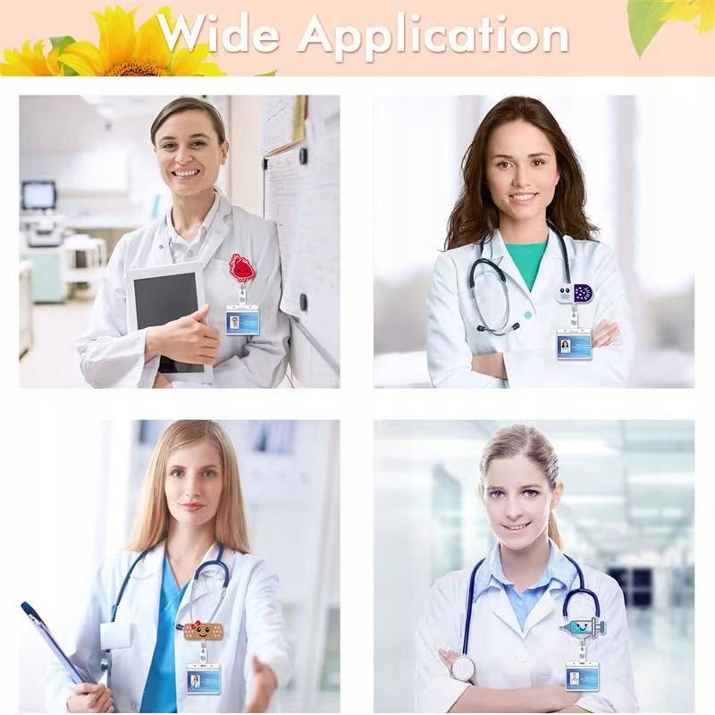 Легкий и компактный дизайн:Каждая симпатичная катушка со значками медсестры весит всего 12 г и поставляется с высококачественным поворотным зажимом. Зажим позволяет легко прикрепить шпульку к воротникам, карманам, ремням или другим элементам одежды без необходимости использования инструментов.