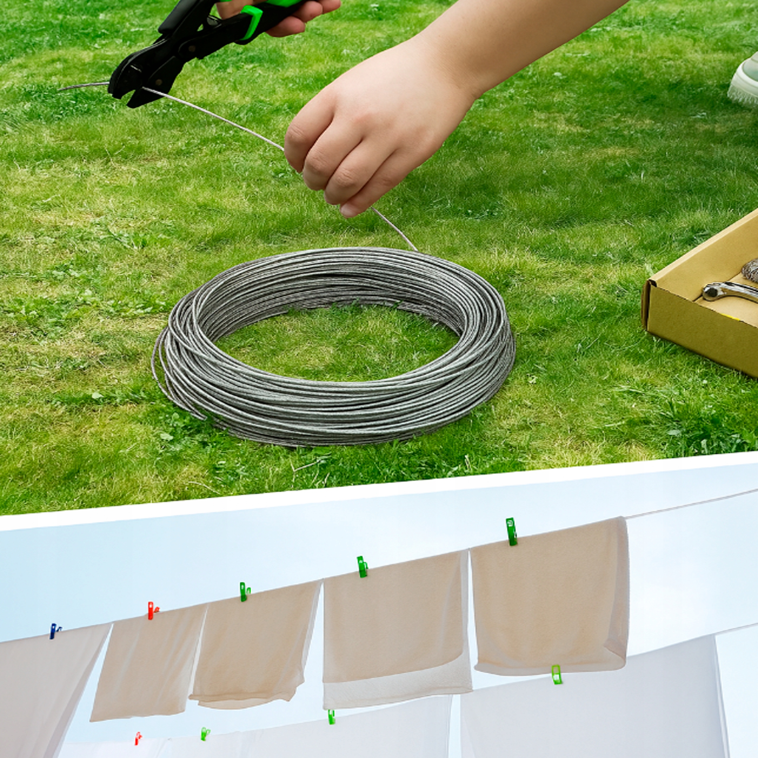 ▶ Благодаря входящим в комплект дюбелям и крючкам вы легко сможете прикрепить трос к стене, забору, столбу или балке. Это идеальное решение для наружного и внутреннего применения – от сушилки для белья до монтажа садовых фонарей и декоративных конструкций.
