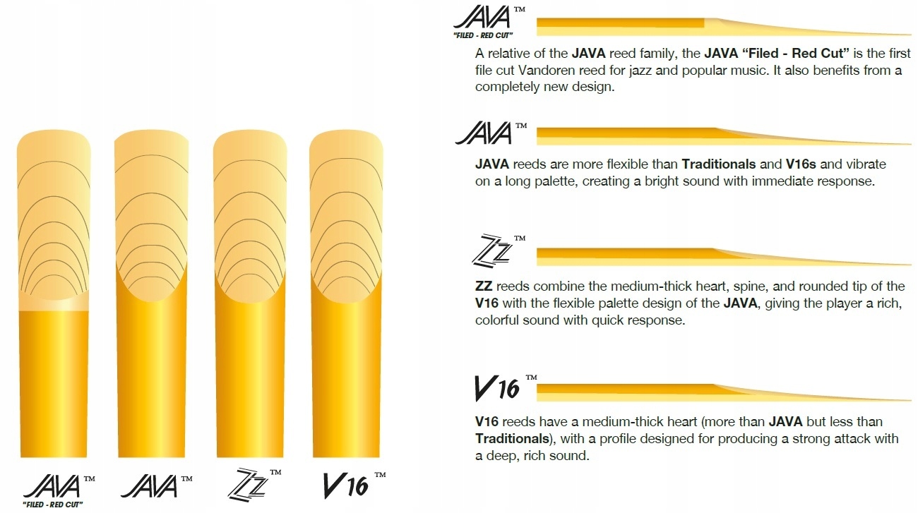 Серия JAVA была разработана в 1983 году специально для популярной музыки и джаза. Более гибкое крыло* по сравнению с сериями Traditional Classic Blue и V16 позволяет вибрациям охватывать большую поверхность, обеспечивая максимальную гибкость и мгновенно воспроизводя звук.