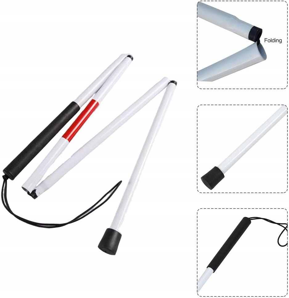 ТРОСТЬ ДЛЯ СЛЕПЫХ, СКЛАДНАЯ, АЛЮМИНИЕВАЯ, РЕГУЛИРУЕМАЯ ВЫСОТА, ПОВОДОК, РУЧКА