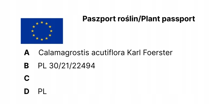Просматривая «Тростинник гостроквітковий 'Карл Фоерстер' - Calamagrostis acutiflora (P9)», вы можете быть уверены, что данный товар из каталога «Травы» будет доставлен из Польши и проверен на целостность. В цене товара, указанной на сайте, учтена доставка из Польши. Внимание!!! Товары для Евросоюза, согласно законодательству стран Евросоюза, могут отличаться упаковкой или наполнением.