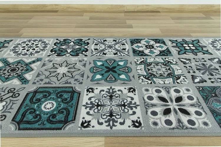 Коврик в стиле пэчворк противоскользящий прорезиненный, бирюзовый, ширина 100 см