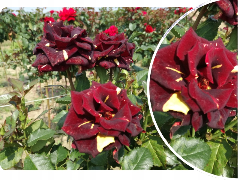 - Стеблевая роза – это привитый на ствол сорт, который еще называют «розовым деревом». Вырастает примерно до 120-160 сантиметров в высоту. Цветки темно-красные, махровые, среднего размера, около 10 см в диаметре, с желтыми пятнами и интенсивным ароматом, цветут с июня по сентябрь. Штамбовые розы часто используются для создания аллей и заборов из роз. Красиво смотрятся и в небольших садах.
