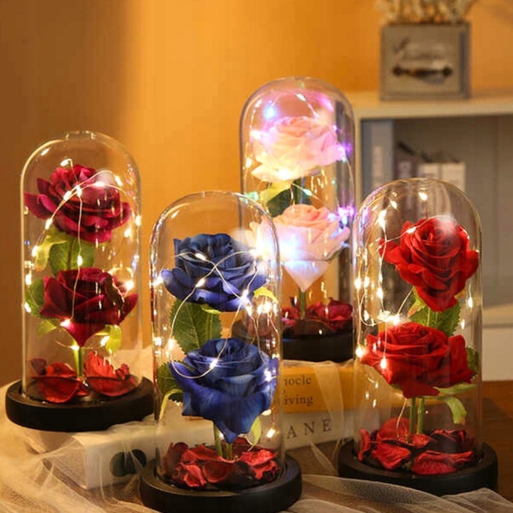 Троянда у склі з вогнями Чарівна вічна квітка в подарунок для неї