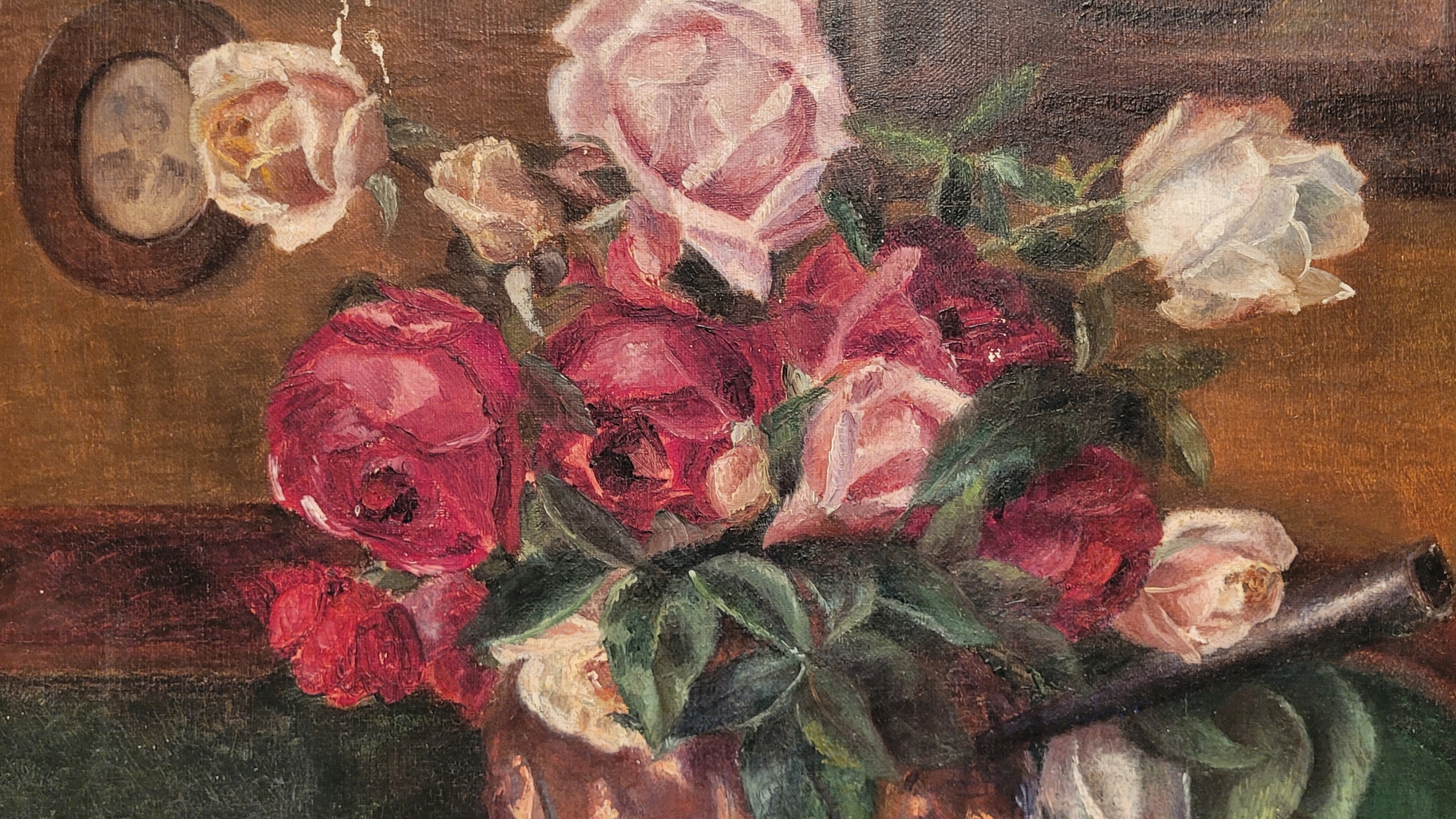 Предмет продажи - красивая, старинная картина маслом "РОЗЫ".