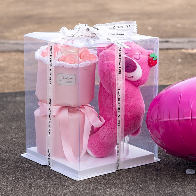 ➡️ХИТ! ЦВЕТОЧНАЯ КОРОБКА РОЗОВАЯ ВЕЧНАЯ РОЗА + МИШКА ТЕДДИ