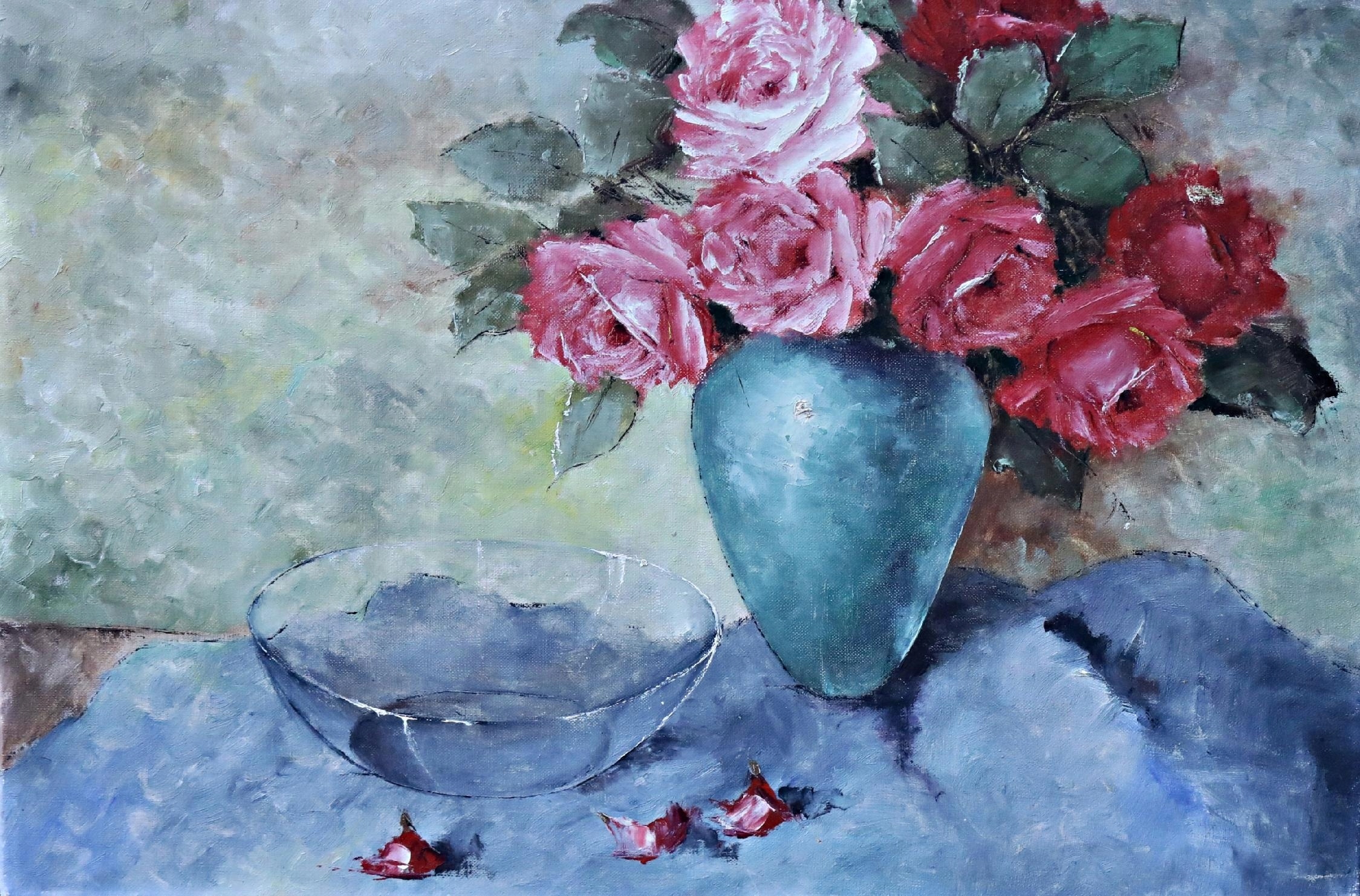 РОЗЫ В ВАЗЕ, СТАРАЯ КАРТИНА МАСЛОМ, ЦЕННАЯ ЖИВОПИСЬ