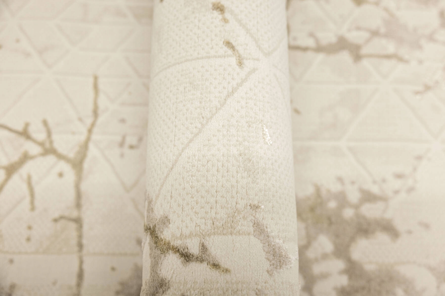 Allora Plus Carpet из роскошной, экстравагантной коллекции с мягкой компактной, двухуровневой руной в оттенках бежевого крема и золота с многоуровневым рисунком, напоминающим мраморную поверхность с треугольниками