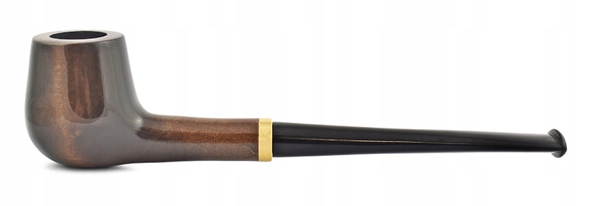 Пшемысльская грушевая трубка. Карбонизированный дымоход и низкая цена наверняка понравятся людям, желающим начать курить трубку. На грифе нанесен логотип производителя и номер модели – гарантия оригинальности. Золотое кольцо, помещенное между шеей и мундштуком, придает образу элегантности.