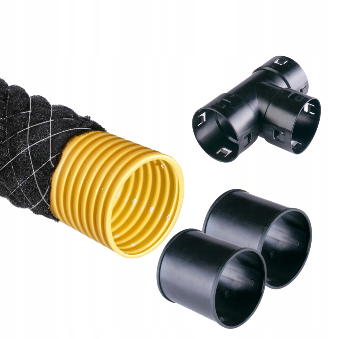 Дренажная труба с черным покрытием PP 700 100 мм х 30 м + соединительная муфта 2 шт. в комплекте + тройник дренажный DR100
