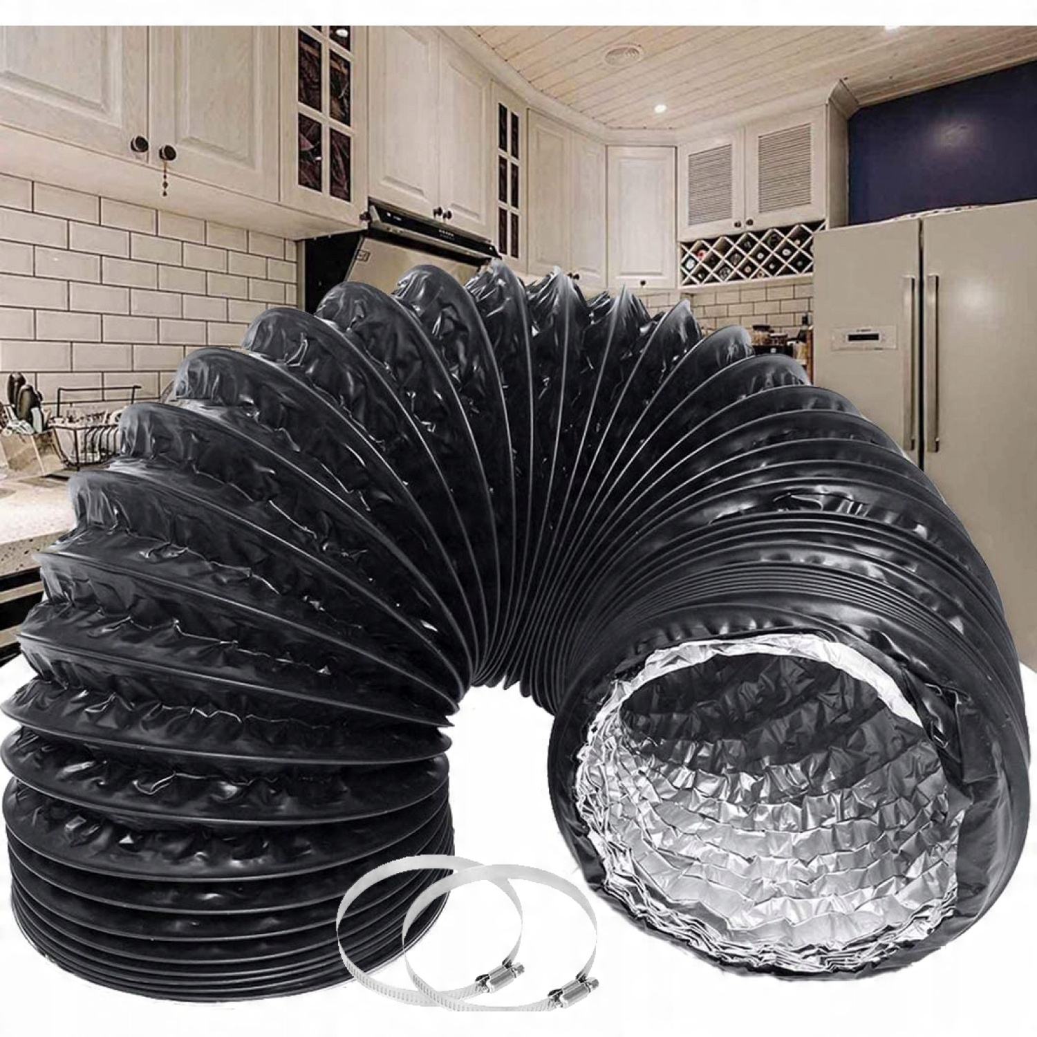 - Вентиляционная труба покрыта Пленка ПВХ водонепроницаема и светонепроницаема, ее нелегко сломать и она эффективно подавляет шум.