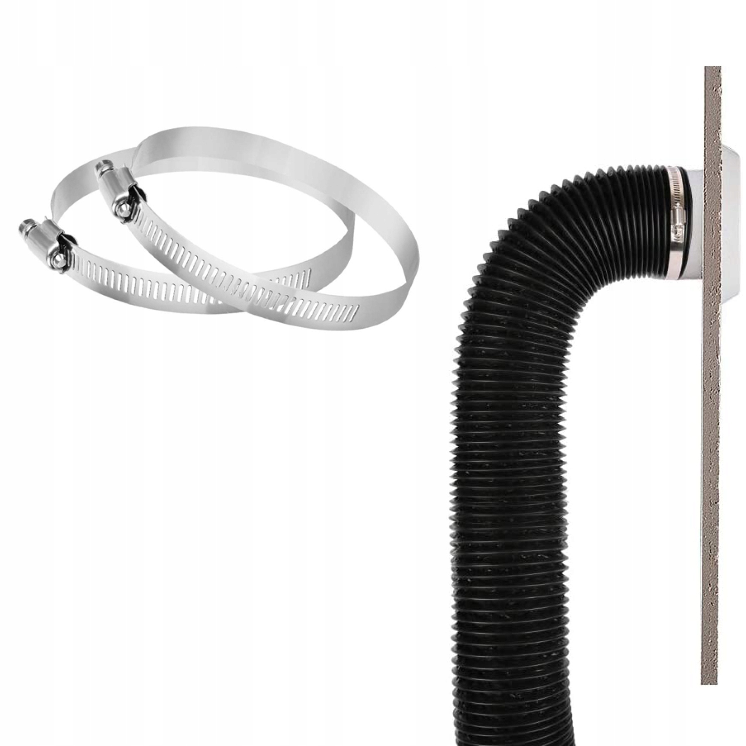 - Гибкий и удобный, простой в установке и ремонте, оснащен 2 хомутами, устойчивый и безопасный.