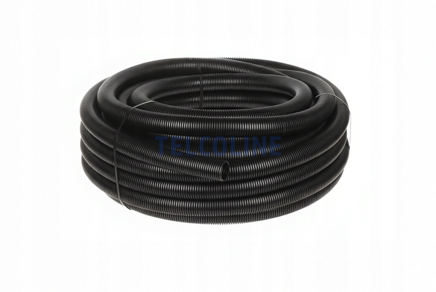 Гибкая, негорючая гофрированная электромонтажная труба из черного ПВХ со стальным направляющим элементом, облегчающим протягивание проводов.