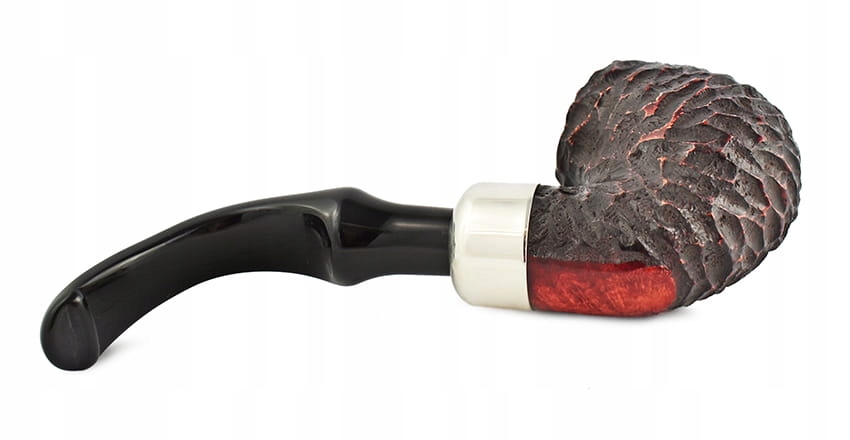 Классическая изогнутая трубка ирландского производителя Peterson of Dublin. Поверхность головы и короткая шея имеют глубокие и четкие бороздки. Шиповник имеет тёмно-коричневый оттенок с вишнёвыми отблесками. Гладкая часть в нижней части грифа демонстрирует текстуру натурального дерева. Это место подписано логотипом производителя, названием и номером модели – гарантия оригинальности. Большое серебряное кольцо придает всему изделию элегантность. Твердый акриловый мундштук необычной формы с P-образным кончиком, который направляет дым при втягивании прямо в нёбо, обеспечивая полный вкус табака.