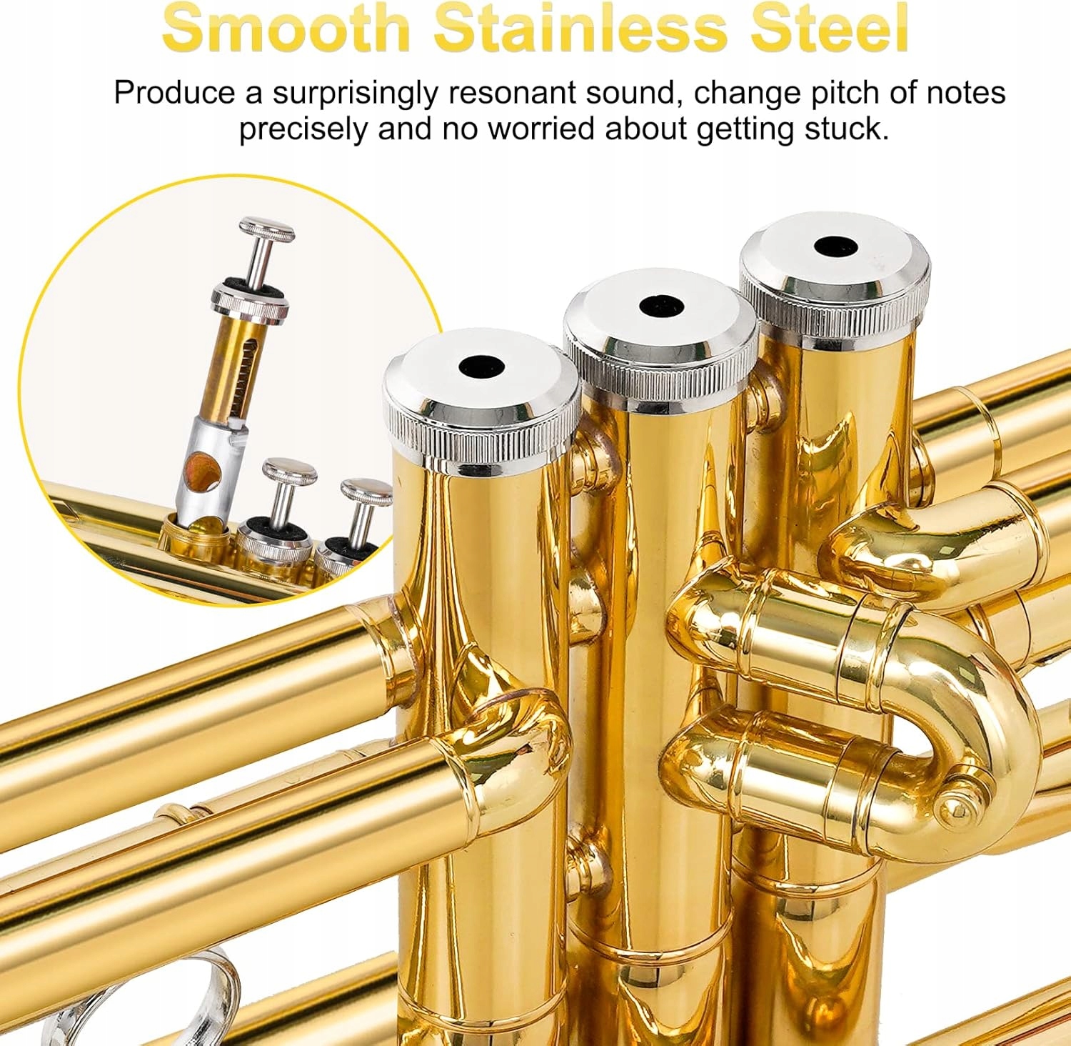 Устойчивый звук: благодаря размеру колокола 12 см и размеру открытия 1,1 см, золотая труба потребляет меньше энергии, чтобы создать звук с устойчивым, мягким и мягким тоном, подходящим для детей, студентов и начинающих